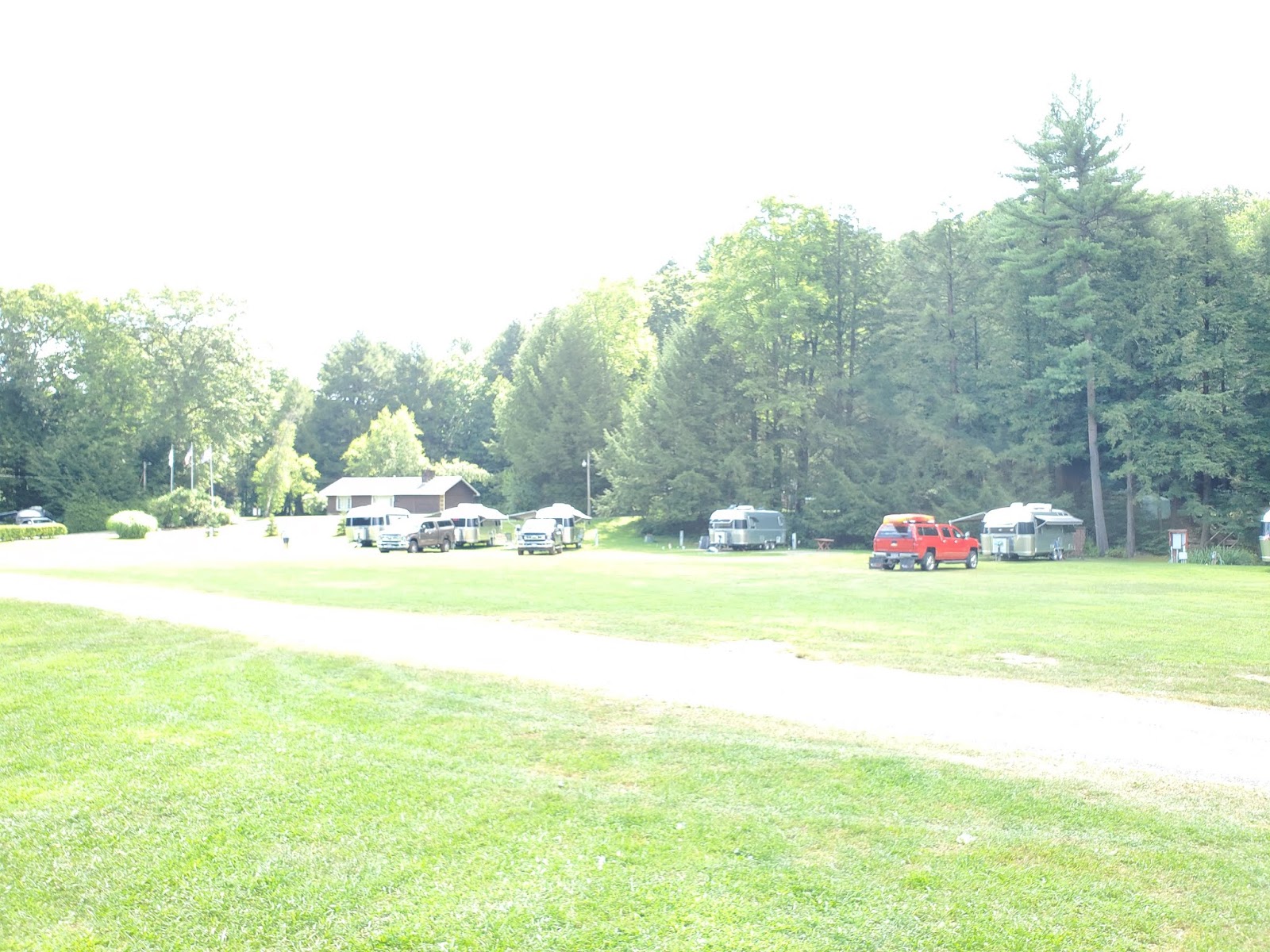 We met a new Airstream couple this weekend, Howard and his wife Tomorrow. A very nice, fun and funny couple from the Cincinnati area. They have a "new" '66 Airstream International Land Yacht Tradewind (There's a mouthful). They just acquired it three weeks ago and it is in pretty good condition considering it's age and that for the past decade or so it has sat in a field. Howard is quite capable of doing most of the necessary work required as he has recent experience in refurbing his original Scotty Highlander. I didn't catch the age/year of the Scotty but it's the real deal. This was their first "official" campout with their new Airstream.